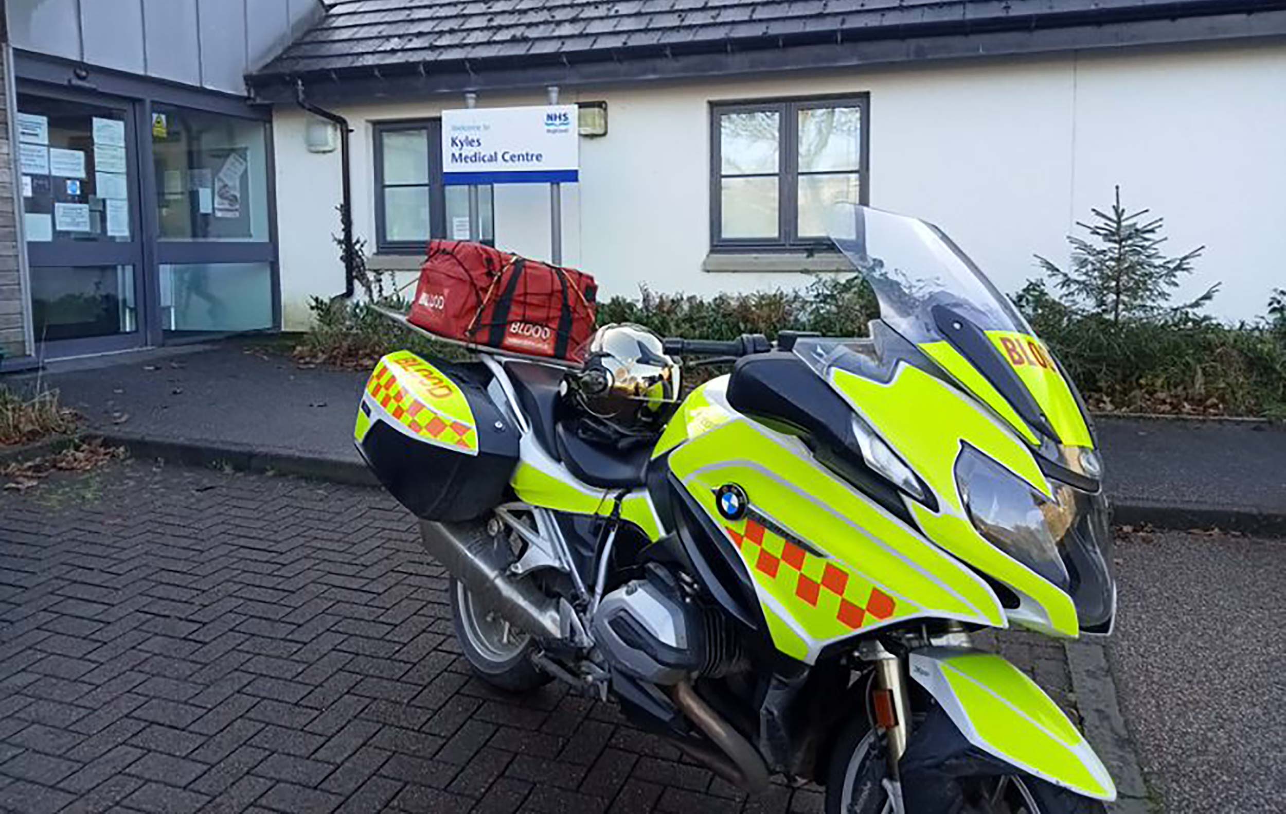 The funds are needed as three top boxes (the luggage box behind the rider’s seat on the motorbike) need to be replaced and each costs £700. The top box is required to transport medication, samples, x rays and other medical documentation and is the main storage area on the motorbikes. Thus the top boxes are a crucial element in order for the motorbikes to continue to deliver this vital service to the NHS in the Highlands